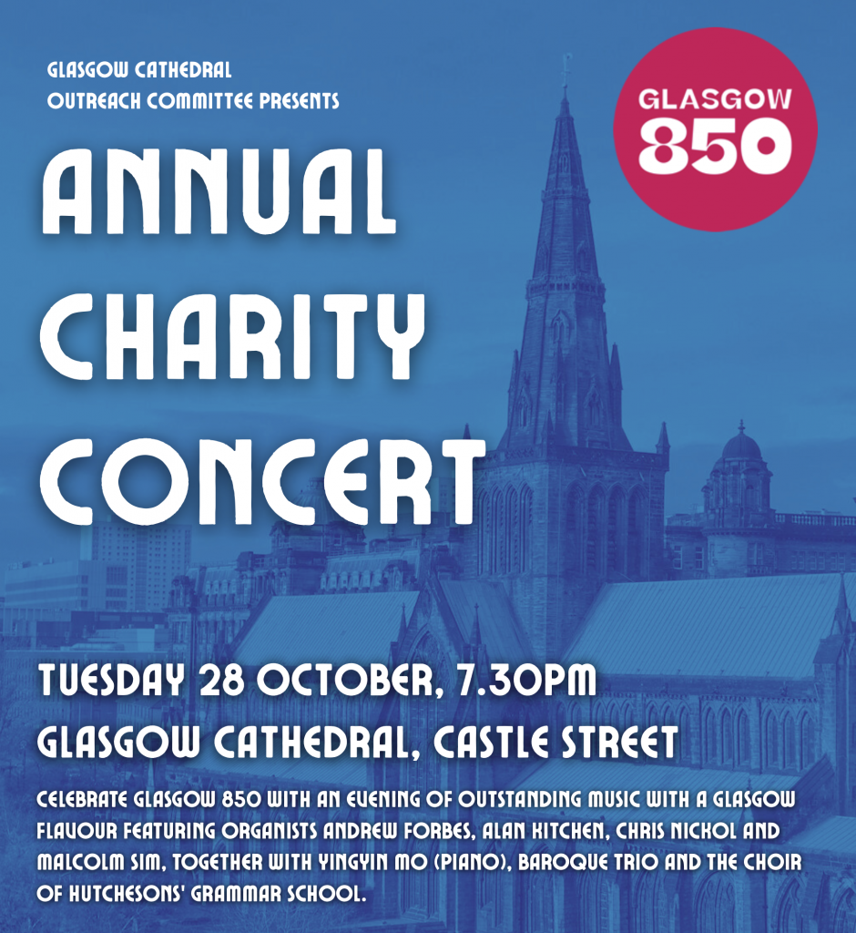 Celebrate Glasgow 850 with an evening of outstanding music with a Glasgow flavour, featuring organists Andrew Forbes, Alan Kitchen, Chris Nickol and Malcolm Sim. For this year’s edition we are delighted to be joined by Yingyin No (piano), the Megan Swift Baroque Trio, and the Choir of Hutchesons’ Grammar School.